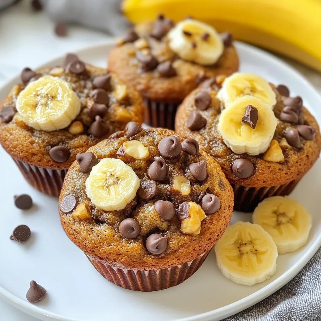 Leckere Muffins mit Bananen und Schokoladenstückchen.