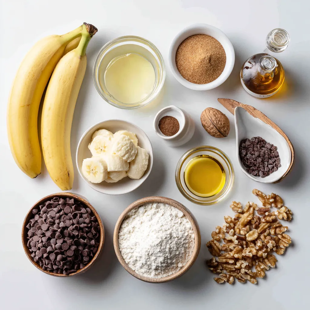 Hauptzutaten für Schokoladenstückchen-Bananenbrot-Muffins