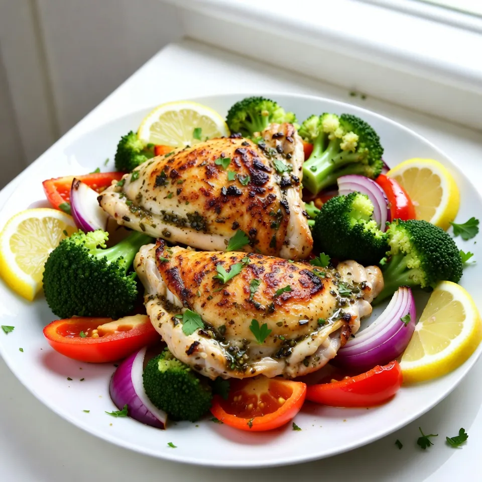 - 4 Hähnchenschenkel ohne Knochen und Haut - 2 Tassen Broccoliröschen - 1 Paprika, in Scheiben (jede Farbe) - 1 rote Zwiebel, in Spalten geschnitten - 2 Esslöffel Olivenöl - 1 Teelöffel getrockneter Oregano - 1 Teelöffel getrockneter Thymian - 3 Knoblauchzehen, gehackt - 2 Zitronen (abgerieben und ausgepresst) - Salz und Pfeffer nach Geschmack In diesem Rezept sind frische und einfache Zutaten wichtig. Die Hähnchenschenkel bringen viel Geschmack und sind zart. Das Gemüse fügt eine schöne Farbe hinzu und ist gesund. Broccoliröschen geben Crunch und Vitamine. Paprika bringt Süße und die rote Zwiebel sorgt für einen tollen Geschmack. Die Kombination von Olivenöl, Kräutern und Knoblauch macht die Marinade besonders. Zitronen sorgen für Frische und eine tolle Säure. Salz und Pfeffer runden alles ab und bringen die Aromen zum Leben. Achte darauf, frische Zutaten zu wählen. Sie machen einen großen Unterschied. Mit diesen Zutaten bereitest du ein leckeres und gesundes Gericht, das schnell geht. {{ingredient_image_2}} Heize den Ofen auf 220°C vor. Das ist wichtig, um das Hähnchen und Gemüse gleichmäßig zu garen. Nimm eine große Schüssel und vermische das Olivenöl, die Zitronenschale, den Zitronensaft, den gehackten Knoblauch, Oregano, Thymian, Salz und Pfeffer. Das ergibt eine tolle Marinade. Lege die Hähnchenschenkel in die Marinade. Achte darauf, dass sie gut bedeckt sind. Lass sie mindestens 15 Minuten marinieren. Für mehr Geschmack kannst du sie auch bis zu einer Stunde im Kühlschrank lassen. Während das Hähnchen mariniert, bereite das Gemüse vor. In einer separaten Schüssel vermische die Broccoliröschen, die Paprika und die rote Zwiebel mit einem Spritzer Olivenöl, Salz und Pfeffer. Lege ein großes Backblech mit Backpapier aus. Das hilft dir, die Reinigung zu erleichtern. Platziere die marinierten Hähnchenschenkel auf einer Seite des Backblechs. Ordne das Gemüse auf der anderen Seite an. Gieße die restliche Marinade über das Hähnchen und das Gemüse. So wird alles schön gewürzt. Backe alles im vorgeheizten Ofen für 25-30 Minuten. Achte darauf, dass das Hähnchen eine innere Temperatur von 75°C erreicht. Das Gemüse sollte zart sein. Schalte den Ofen für die letzten 2-3 Minuten auf Grillfunktion. Das gibt dem Hähnchen und Gemüse eine schöne Farbe. Behalte alles gut im Auge, um ein Anbrennen zu vermeiden. Nimm das Blech nach dem Garen aus dem Ofen und lasse alles 5 Minuten ruhen. Vor dem Servieren garniere mit frischer Petersilie. Du kannst das Gericht direkt vom Backblech servieren. Das sieht rustikal und einladend aus. Marinierzeit für mehr Geschmack Mariniere das Hähnchen mindestens 15 Minuten. Für mehr Geschmack lasse es bis zu 1 Stunde im Kühlschrank. Die Marinade zieht dann tiefer ins Fleisch ein. Das macht das Hähnchen saftiger und würziger. Zusätzliche Gewürzideen Du kannst die Marinade anpassen. Probiere Paprikapulver für mehr Schärfe. Füge etwas Honig für eine süße Note hinzu. Du kannst auch frische Kräuter verwenden. Basilikum oder Rosmarin passen gut zu diesem Gericht. Auswahl alternativer Gemüsesorten Jedes Gemüse funktioniert gut in diesem Rezept. Du kannst Karotten und Zucchini verwenden. Auch Blumenkohl oder grüne Bohnen sind lecker. Wähle das Gemüse, das du magst oder das du übrig hast. Tipps zur perfekten Garzeit Denke daran, dass Gemüse unterschiedliche Garzeiten hat. Broccoli braucht etwa 25 Minuten, während Paprika weniger Zeit braucht. Schneide das Gemüse gleichmäßig, damit alles gleichmäßig gart. Prüfe einfach mit einer Gabel, ob es zart ist. Zubereitung auf dem Grill Du kannst das Hähnchen auch grillen. Lege das marinierte Hähnchen auf den Grill. Stelle sicher, dass der Grill heiß genug ist. Das Gemüse kannst du in einer Grillpfanne zubereiten. So erhält alles einen tollen Grillgeschmack. Kochen in einer Pfanne als Alternative Wenn du keinen Ofen hast, kannst du das Hähnchen in einer Pfanne zubereiten. Brate das Hähnchen in Olivenöl an. Füge das Gemüse später hinzu. So wird das Gericht trotzdem lecker und einfach. Pro Tipps Marinierzeit maximieren: Lasse das Hähnchen länger als 1 Stunde marinieren, um den Geschmack zu intensivieren. Gemüsevariation: Experimentiere mit verschiedenen Gemüsesorten wie Zucchini oder Karotten für mehr Vielfalt und Farbe. Grillfunktion nutzen: Verwende die Grillfunktion am Ende des Garprozesses, um eine knusprige Oberfläche zu erzielen. Achte darauf, es im Auge zu behalten, um Anbrennen zu vermeiden. Frische Kräuter hinzufügen: Füge frische Kräuter wie Basilikum oder Dill nach dem Garen hinzu, um zusätzliche Frische und Geschmack zu erhalten. {{image_4}} Eine einfache Art, dein Gericht zu verändern, ist die Würzung. Du kannst eine asiatische Note hinzufügen. Verwende Sojasauce und Ingwer. Das gibt deinem Hühnchen einen neuen Geschmack. Für eine mediterrane Version probiere frische Kräuter. Thymian und Basilikum passen gut. Du kannst auch etwas Feta-Käse hinzufügen. Diese Variationen machen jedes Mal Spaß. Wenn du eine glutenfreie Option suchst, ist dieses Rezept ideal. Alle Zutaten sind von Natur aus glutenfrei. Du kannst auch Low-Carb oder Keto-Varianten machen. Lass einfach die Kartoffeln weg und füge mehr Gemüse hinzu. Zucchini oder Blumenkohl sind tolle Alternativen. So bleibst du in deiner Diät und genießt dennoch den Geschmack. Dieses Gericht passt gut zu verschiedenen Beilagen. Reis oder Quinoa sind einfache Optionen. Sie nehmen die Aromen gut auf. Du kannst auch einen frischen Salat dazu servieren. Ein einfacher grüner Salat mit Zitronen-Dressing passt perfekt. Oder probiere einen Couscous-Salat mit Gemüse. So hast du ein komplettes und leckeres Essen. Nach dem Essen bleiben oft leckere Reste. Du solltest sie sicher lagern. - Kühlschrank und Kühlzeit: Bewahre die Reste in einem luftdichten Behälter auf. So bleiben sie frisch. Du kannst die Reste bis zu drei Tage im Kühlschrank lagern. Achte darauf, die Reste schnell