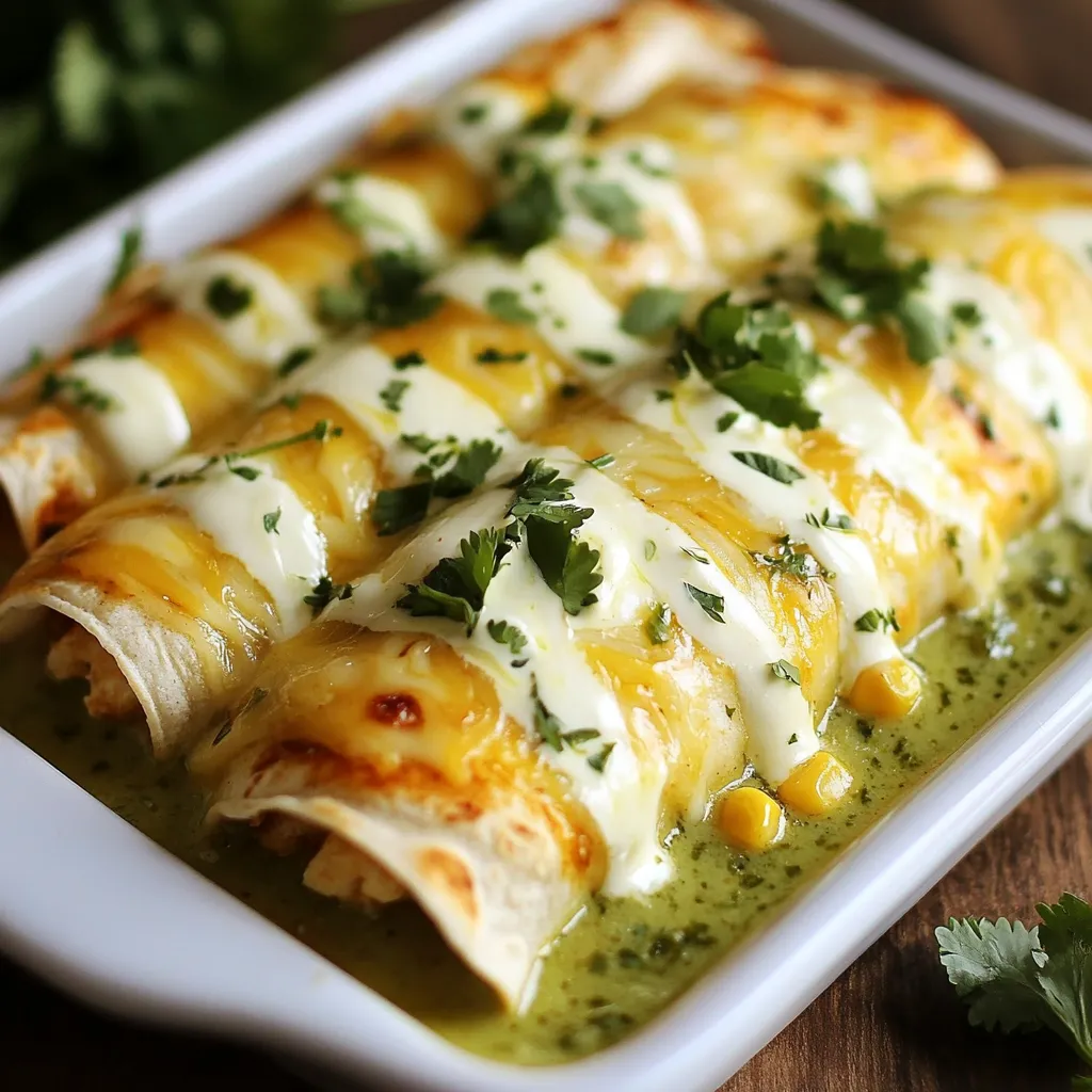 Die grüne Enchiladasoße ist wichtig. Sie sorgt für einen schönen Geschmack. Ich empfehle, die Soße gleichmäßig zu verteilen. Das hilft, die Tortillas nicht trocken zu machen. Wenn du mehr Würze magst, füge etwas mehr Chili-Pulver hinzu. Garniere die Enchiladas mit übrigem Sauerrahm für extra Cremigkeit und einen tollen Look.