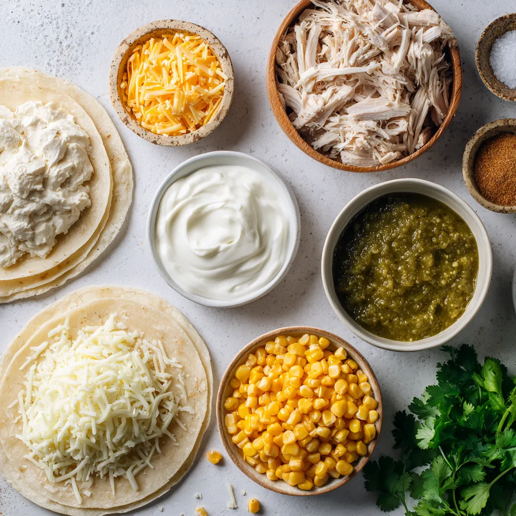 Hauptzutaten für Sauerrahm-Hühnchen-Enchiladas