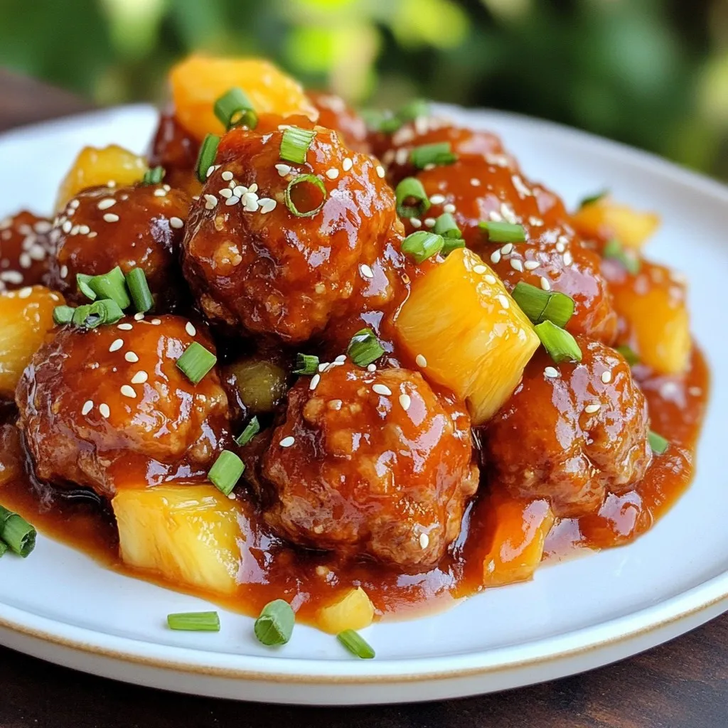Keyword Ananas, Fleischbällchen, süß-sauer