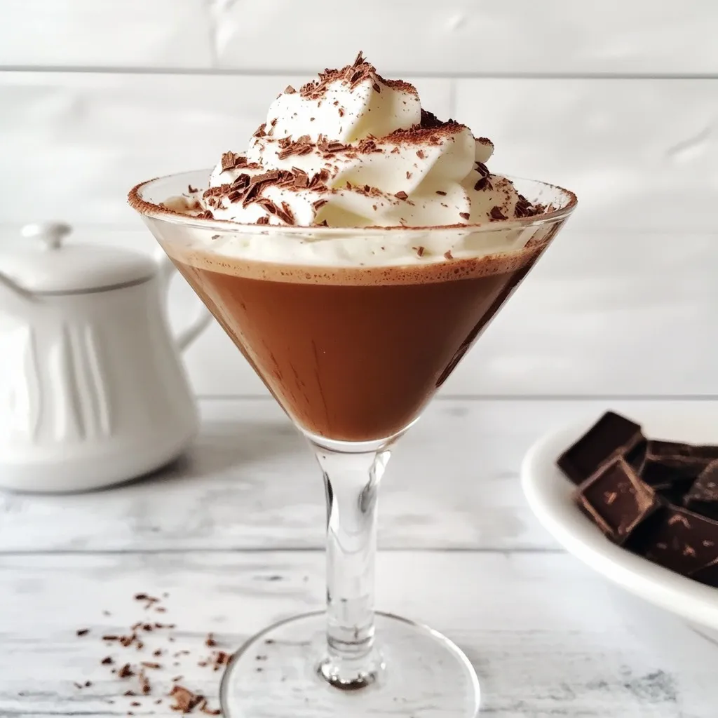 Serviere den Martini mit einem Schokoladenstängel oder einer Mini-Schokoladentafel am Rand des Glases für einen eleganten Akzent.