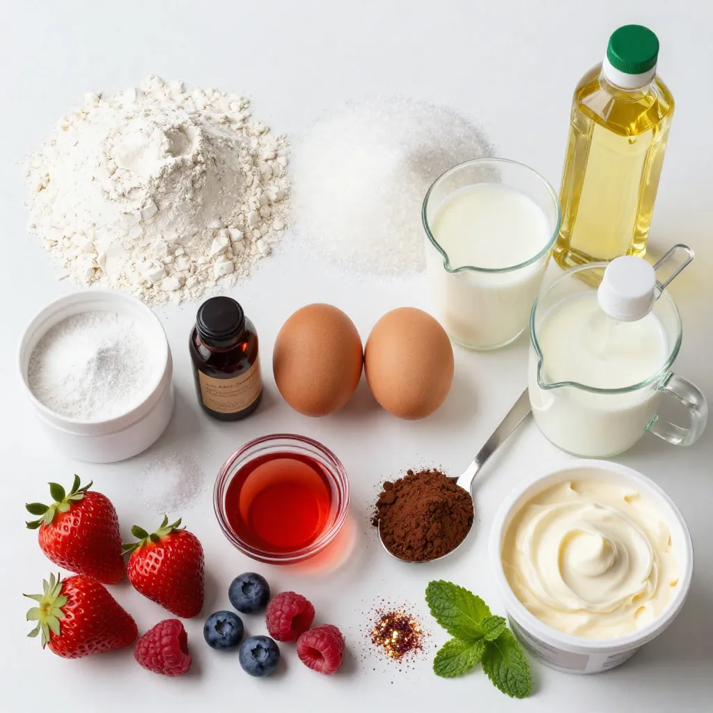 Hauptzutaten für den Rote Samt Kranzkuchen