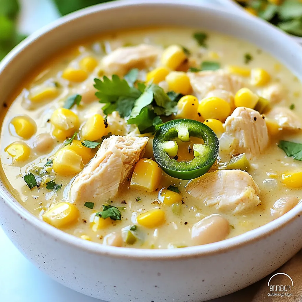 Ein cremiges und herzhaftes Chili mit Hähnchen, weißen Bohnen und Gewürzen.